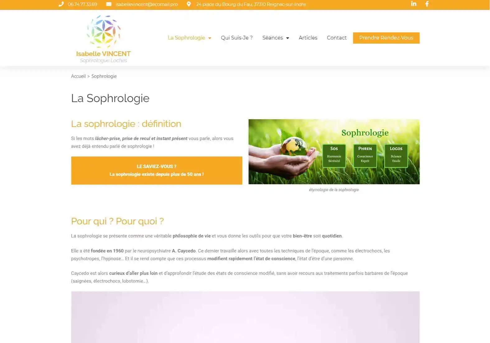 La sophrologue et formatrice, Isabelle Vincent a choisi notre agence web pour la refonte de son site vitrine pour son cabinet de sophrologie de Loches.